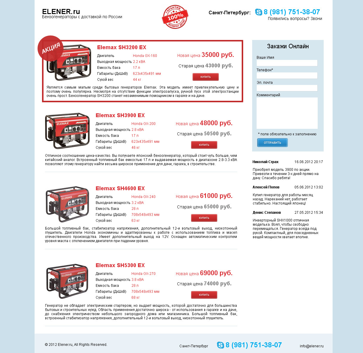Сайт продающей бензогенераторы